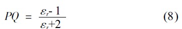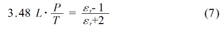 对公式(7)进行分析可知,当温度恒定时,只有P 和εr 两个变量,可设一常量Q= 3.48LT并将其代入公式(7),可得: